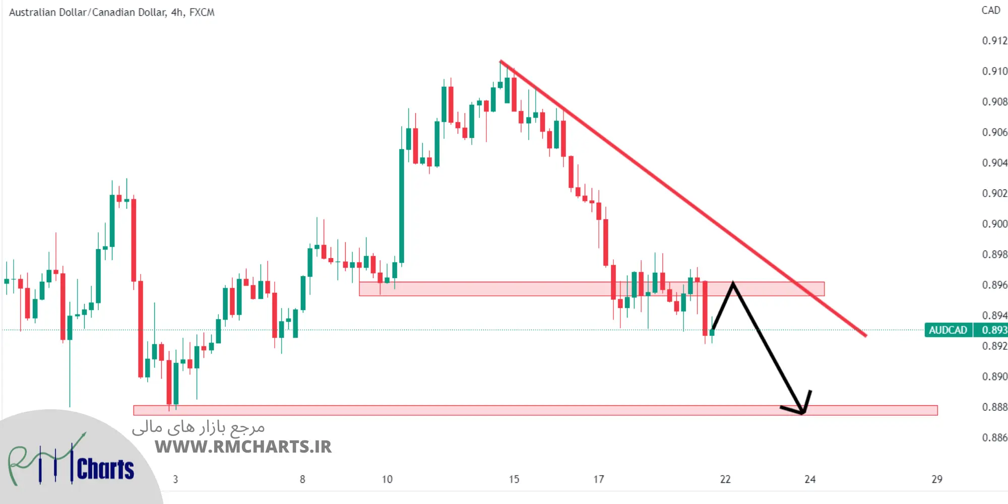 این تحلیل بیانگر ادامهدار بودن روند نزولی در AUD/CAD است و در صورتی که قیمت نتواند مقاومت را بشکند و در زیر آن باقی بماند، احتمال کاهش بیشتر وجود دارد.
